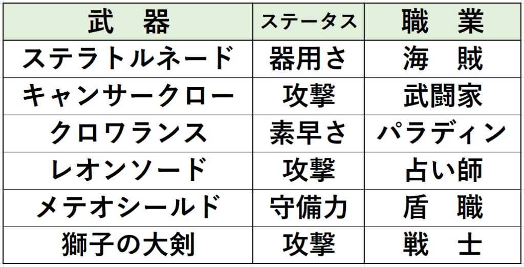 クロワランスもノクゼリア戦ではスタメンのパラディン用の武器として高い人気を誇ります。武器の性能自体が強力で、パラの弱点である遅い素早さをカバーしてくれるで素早さ盛りの恩恵は大きいです。ただ、海賊と同じで槍パラの出番がノクゼリアに集中していて他のボスでの活躍が難しいから使い回し出来ないのが悩みどころっす。とはいえ、槍パラはメイン火力大いにいれる価値はあると思います!