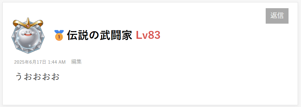 つ…ついに!当ブログから最上位モンスタープラチナキングに進化した方が誕生しましたよ!コメント機能を改修してから、一向に姿が見えないんで「プログラムミスかな?」と思っていたんですが、無事に作動してくれて一安心です!伝説の武闘家lv 83さんいつもコメントの書込みありがとおおおお!