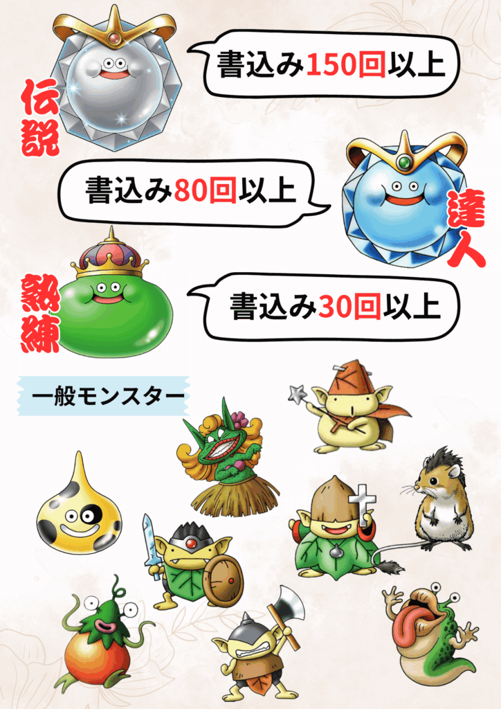 ちょっとコードを確認したらコメント書き込み30回以上でモンスターが進化します。現状の最上位のプラチナキングになるには150回も書込みしないといけないんですね!皆さんいつもコメントどうもありがとうございます!当面はこの設定を維持したいと思っています!