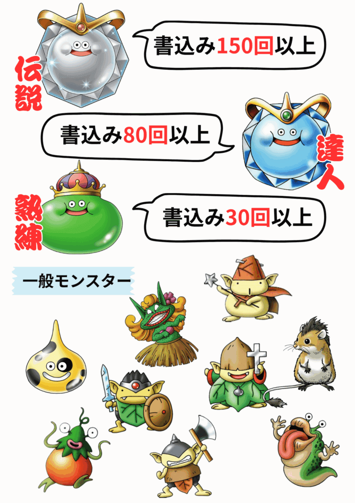 ょっとコードを確認したらコメント書き込み30回以上でモンスターが進化します。現状の最上位のプラチナキングになるには150回も書込みしないといけないんですね!皆さんいつもコメントどうもありがとうございます!当面はこの設定を維持したいと思っています!