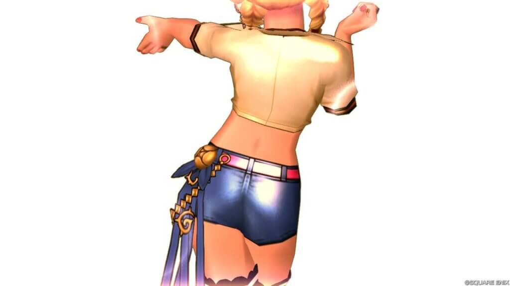 これは「つやめきペイント」を使わないと気づきにくいんですが、このデニムショートパンツに光沢を加えると、ヒップラインの張りがくっきりと浮き上がって立体感が出るんです。特に走っているときの光の反射と揺れの動きが、まるでお尻がぷりんぷりんと弾むように表現されていて、製作者の質感と動きへのこだわりがしっかり伝わってきます。これは決してエロではなく、衣装としての完成度を高めるための機能美。細部まで緻密に作り込まれたまさに“職人技”っす!