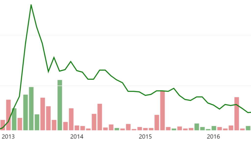 上の表はガンホーの株価になります。、ガンホー株=バズドラの売上推移と見て差支えないかなと思います。かつてソシャゲで覇権を冠したパズドラですが、2014年以降課金圧が強くなったと言われています。具体的にはコラボガチャで人権キャラが登場し、また次のコラボガチャでその上を行く性能の人権キャラが登場するのを繰り返す感じっす。結果固定ユーザーしか残らなくなったと言われいます。DQ10が同じ轍を踏まないようにVer8に期待したいです!