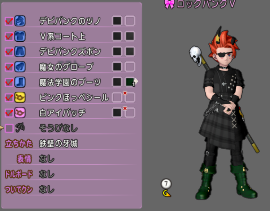 はいー!というわけでこちらが新作厨二ドレアになります!ありきたりな感じですが、このドレアを悪魔の福音書(読み:デビルズコード)ドレアと命名したいと思います!ショップ新作のデビパンク装備を取り入れています。デビル×パンク×ロック×病み系など厨二要素を詰め込んだまさにパンドラの箱っス!アストルティアでもここまでゴテゴテの厨二ドレアを見る機会はないんじゃないっすかね?人間男でw