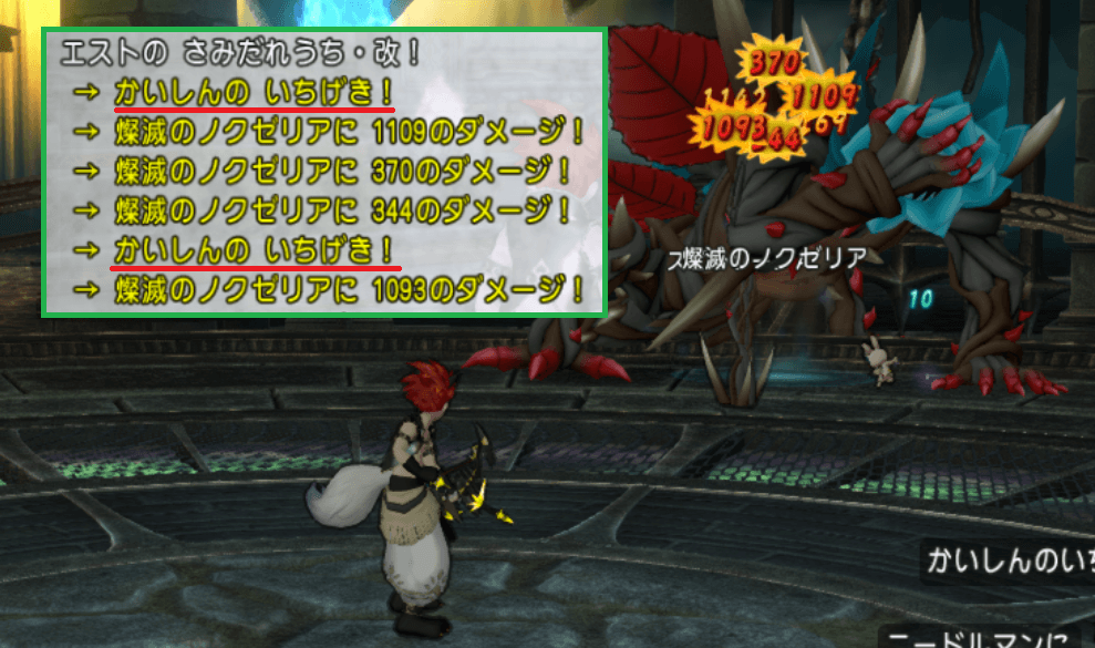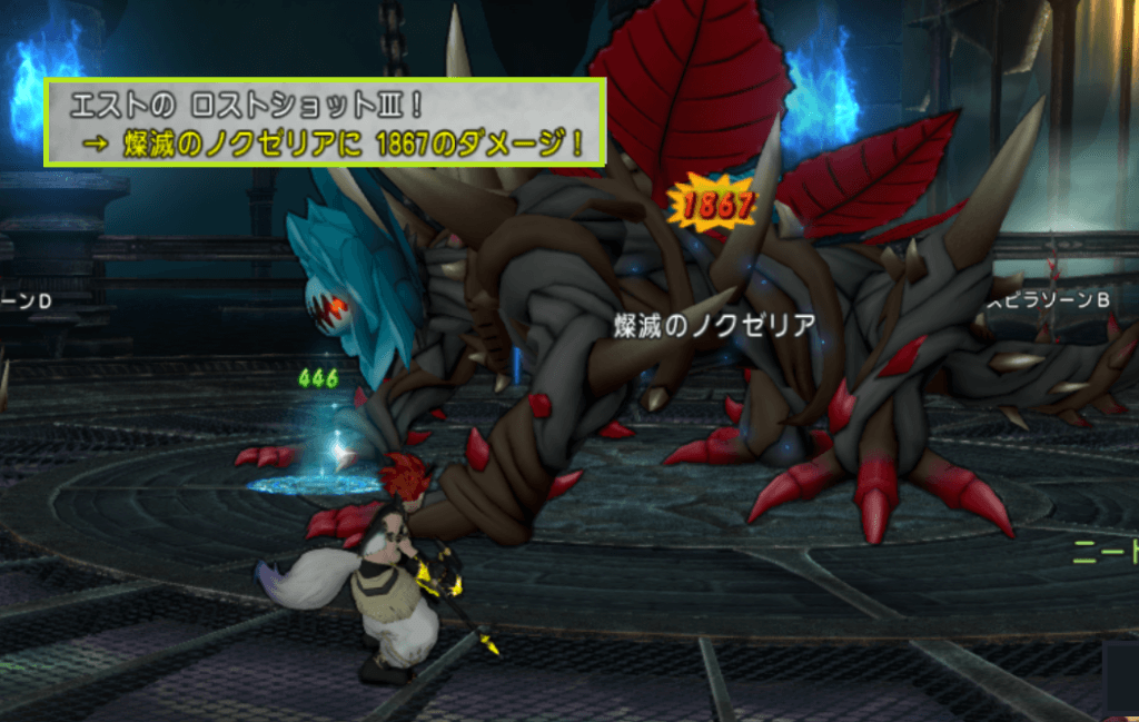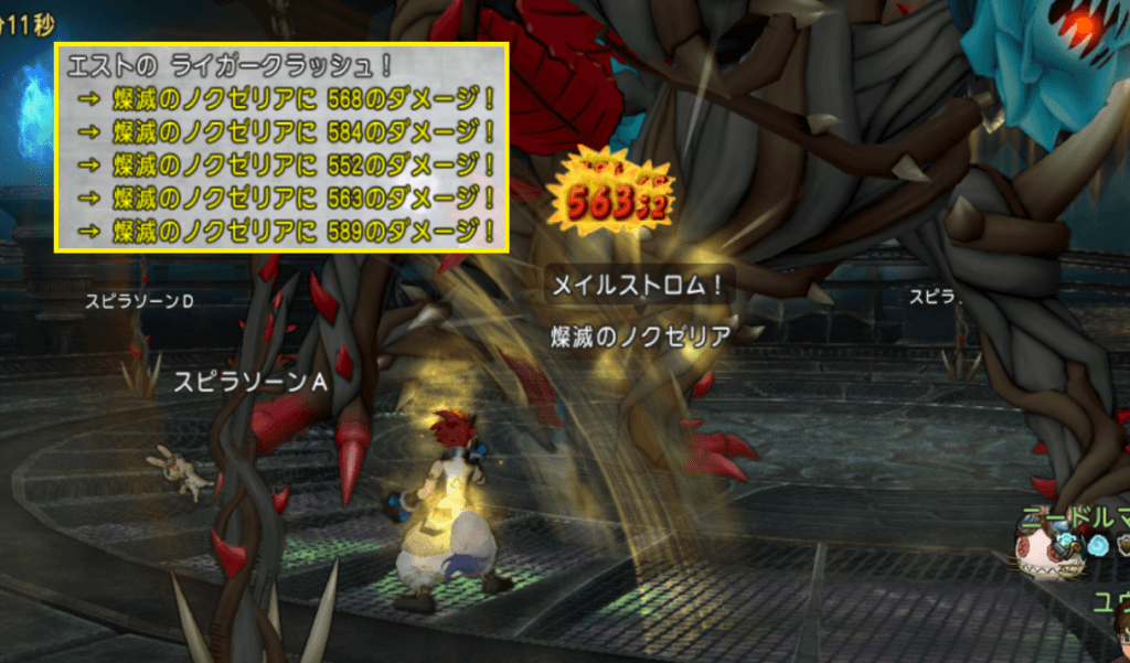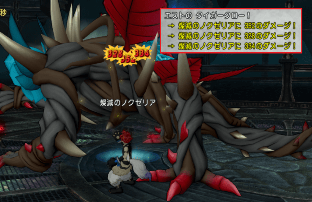 ジェノスここからはノクゼリアを相手にツメと弓のダメージの検証です!バイキルト状態で特技を使用しています。