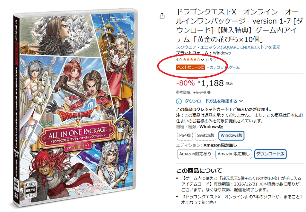 DQ10がAmazon1位を記録