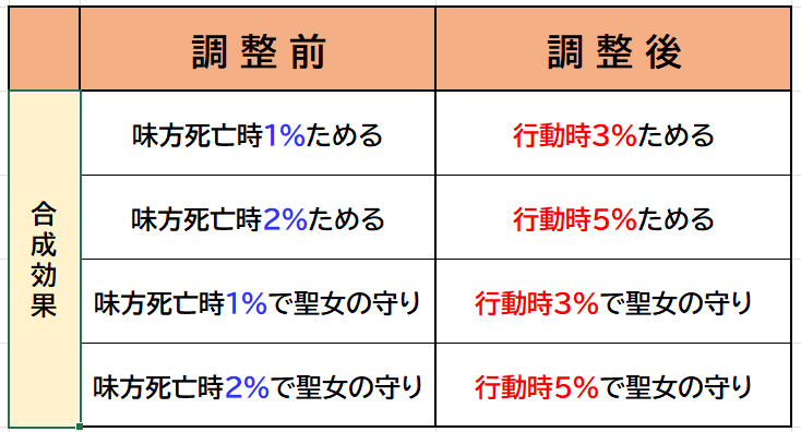 ジェノス味方死亡時っていうのが発動が限定的で確率も低いという声が多かったんで合成効果の強化が望まれていましたね。
