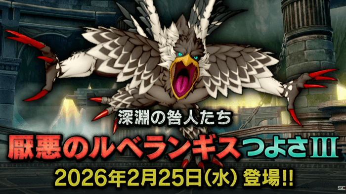 はーい!どーもどーもっス!本日はルベランギスつよさⅢに関する内容になります。DQTVで発表がありましたが、2/25日が実装日となります。このルベランギスはWカラミティによる床攻撃と八門&クリムゾンによる直線攻撃が特徴的で、いずれも多段の即死級ダメージで、避けられるかどうかが生死を分けるアクション要素の強いボスになっています。つよさⅢが実装されることで掲示板でも話題になっていたので紹介した上で考察したいと思います!それではいってみましょう!