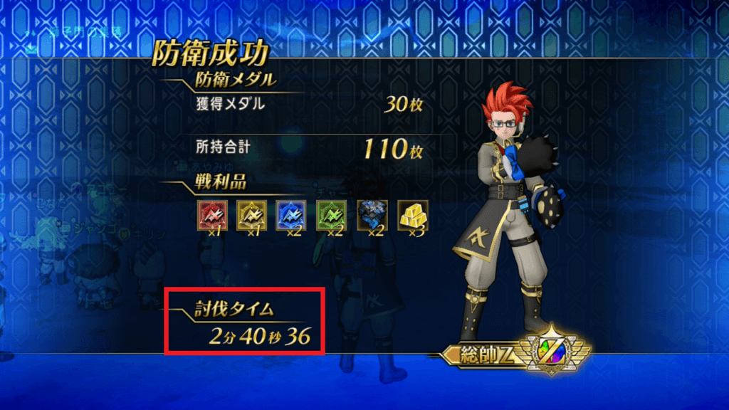 こちらが、3周分のスクショになります。だいたい平均は2分40秒くらいでしょうか?防衛失敗もあったんで一概には言えませんが、体感的には全盛期よりも1分20秒くらい遅いかなって感じっす!