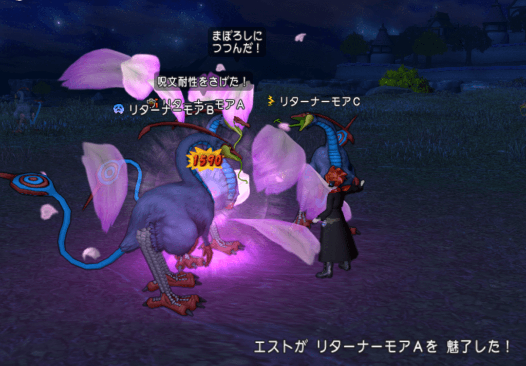 専用技には「タタリメ演舞」があり、射程は15mで遠距離から攻撃できるため、旅芸人がタゲ下がりをしてる最中でも差し込みが可能っス。マホ解除埋めの扇があれば遠距離からマホカンタを剥がせるぞ!