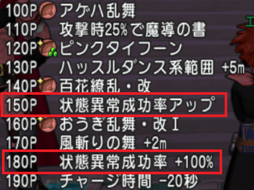 また、扇旅芸人は1つのスキルラインに「状態異常成功率」が2つという点も特徴的です。思った以上にデバフが入りやすいワケっす。