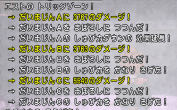 タタリメ演舞とおうぎ乱舞・改はわるい効果がついているほど高火力という特性があり、ルカニが入ってることもあって、思ったよりも火力を出すことが出来ましたよ!お題の制限時間内の討伐も問題なしっス!