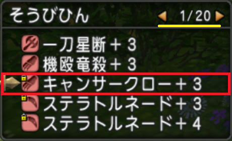 これで完成です!持ち替える武器のみが1ページに収まってるので、ページを跨いで探す手間が省けます。個人的には先頭に「キャンサークロー」を置いておくといいかなと思います。なぜなら「さくせん」をA連打で、最速でキャンサークローが決定されるからっす。コマンド画面で↑AAAでキャンサークロー。↑AA↓Aでセレーネアックスに持ち替えができるワケっす!