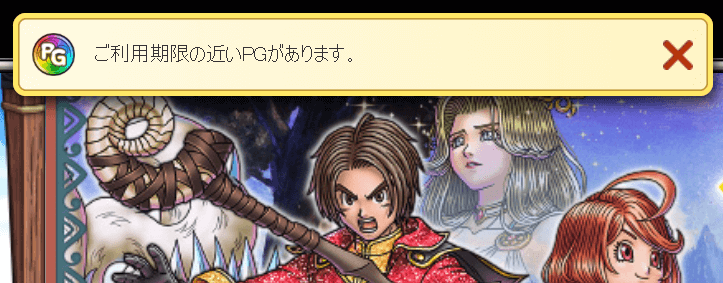 個人的には、広場に行くたびに表示される「PGの使用期限が…」という警告をなんとかしてほしいですね。×で消してもページを移動するたびにまた表示されるので、正直かなり邪魔に感じます。運営から「PGを使わせて課金につなげたいのかな?」と思ってしまう部分もあります。