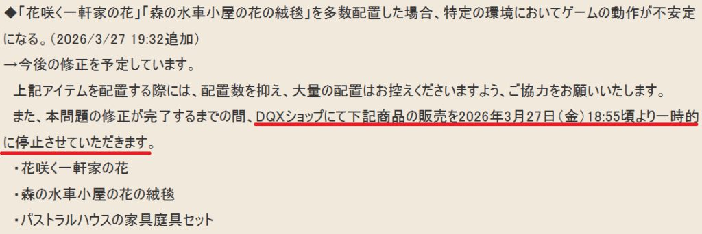 はーい!どーもどーもです!本日は新作庭具が超巨大過ぎて販売停止になった件についての内容になります!上の画像を見て分かるようにこの、チューリップの庭具を含む一部ショップ商品が販売停止になっているんです。というワケで実際に何がどうなっているのか見て行きましょう!