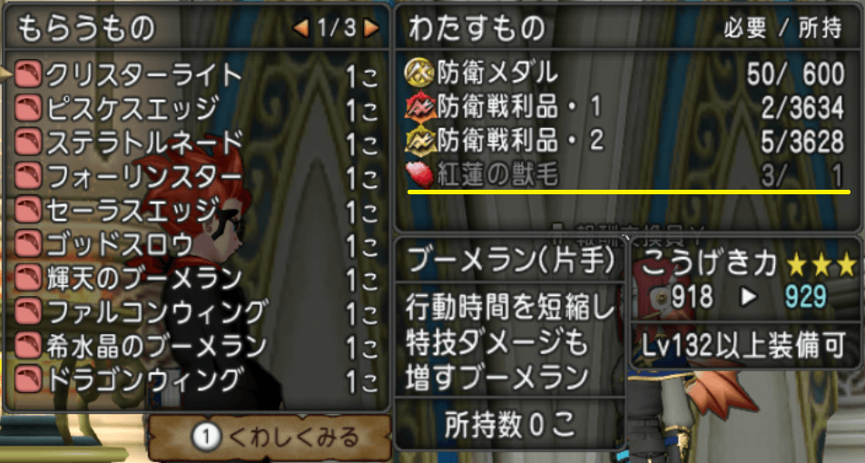 これ、新素材の補填がないと防衛メダルが余ってしまい、Lv132武器と交換できないんですよね…。同じようなバグがまた起きたときのためにも、防衛メダルの上限は10000枚くらいまで引き上げてほしいところです。実際、自分のように最新武器と交換できず、泣く泣くLv130武器や盾に交換した人も多いのではないでしょうか。